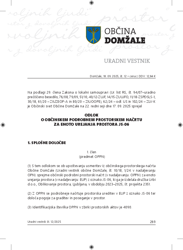 Odlok o občinskem podrobnem prostorskem načrtu za enoto urejanja prostora JS-06 (Št. 12 - 2025)