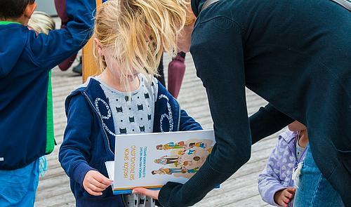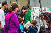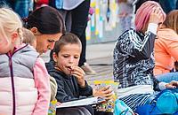 Že pred predstavitvijo je bilo na ploščadi zelo veselo, še posebej glasno je bilo pred kolesom sreče, kjer so si otroci z vrtenjem lahko pridobili različne zanimive nagrade, od katerih je bila seveda najbolj zaželena prav nova knjiga.