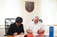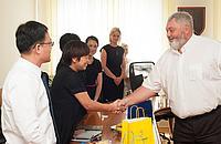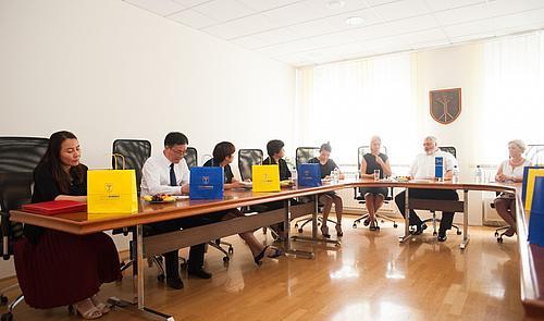 Tuje goste so v sejni sobi sprejeli župan Toni Dragar, podžupanja mag. Renata Kosec in vodja novoustanovljene Službe za turizem, Mira Bečan. Župan je na kratko predstavil občino Domžale, prav tako so kitajski gostje povedali nekaj o svojem mestu in na koncu podpisali sporazum o prijateljskem sodelovanju in izmenjavi med mestoma.