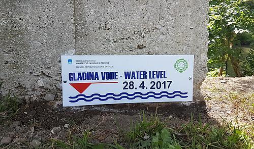 Predstavniki Komisije za hidrogeografijo pri Zvezi geografov Slovenije, Agencije Republike Slovenije za okolje (ARSO), in Zavoda Republike Slovenije za šolstvo so v petek, 16. junija 2017 v sodelovanju s Srednjo šolo Domžale in Občino Domžale skupaj postavili oznako visoke vode na Kamniški Bistrici v Domžalah.