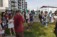 Akcijo postavitve oznake smo povezali s terenskim poukom ob Bistrici za geografijo pri katerem sta sodelovali dve profesorici, prof. Petra Dovč in prof. Alenka Lenarčič. Na terenskem pouku so dijaki ugotavljali različne fizično in družbeno geografske značilnosti območja Domžal in reke Kamniške Bistrice, regionalne in lokalne značilnosti ter fizikalne in kemične značilnosti vode.