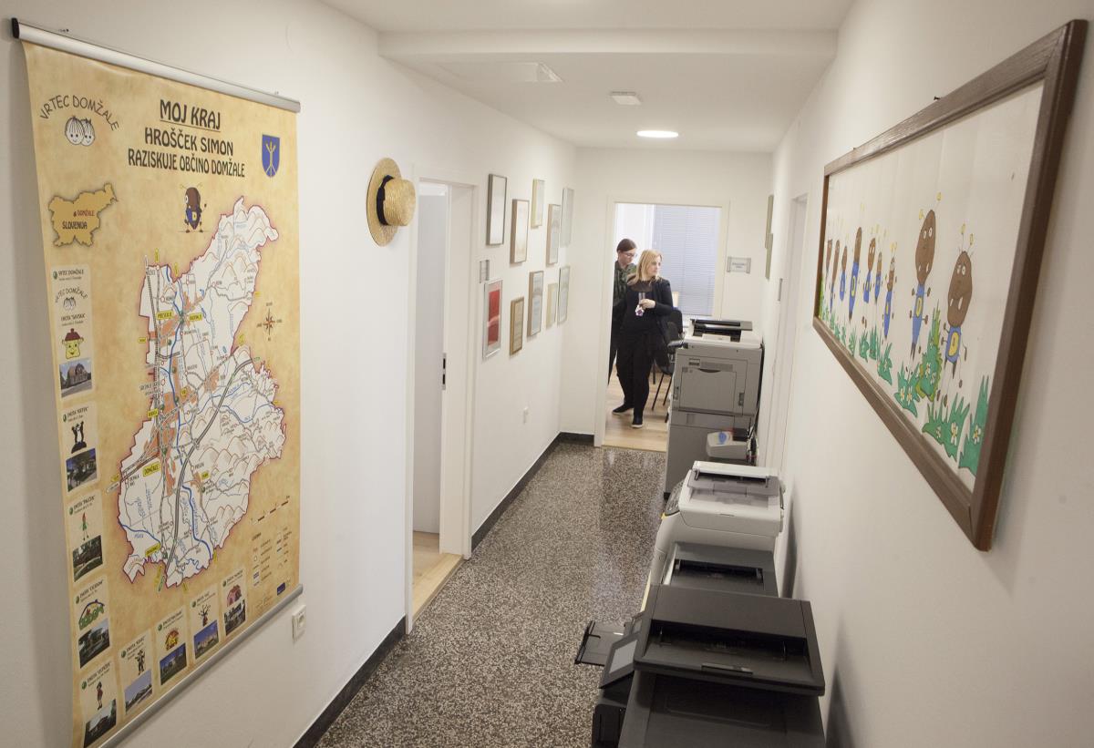 Nove prostore Uprave Vrtca Domžale sta si v sredo, 25. oktobra 2017 ogledala tudi župan Občine Domžale Toni Dragar in vodja Oddelka za družbene dejavnosti na Občini Domžale Kristina Slapar ter še nekateri predstavniki okoliških vrtcev in šol. Ravnateljica Vrtca Domžale, Jana Julijana Pirman je na ogledu dejala, da je bilo sprva za vse zaposlene težko že z mislijo, da se selijo na novo lokacijo. Vendar pa, ko so se vselili v veliko prijetnejše in prostornejše ter sodobno opremljene prostore, je ta malce neprijeten občutek hitro izginil, saj so delovni pogoji veliko bolj prijetni. Po ogledu prostorov je župan ravnateljici izročil darilo – sliko Domžal (akvarel, prepreden s svinčnikom) ter njej in vsem zaposlenim zaželel uspešno in prijetno delo v novih prostorih.