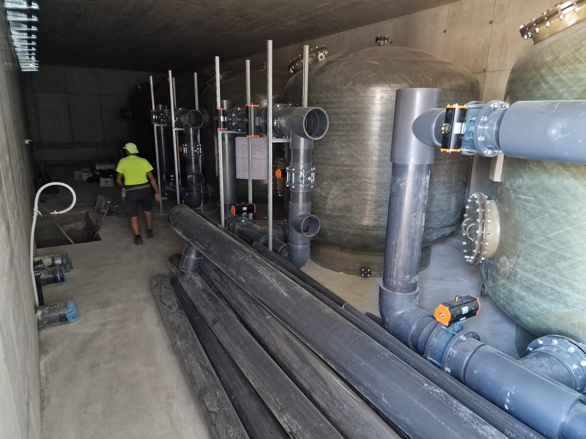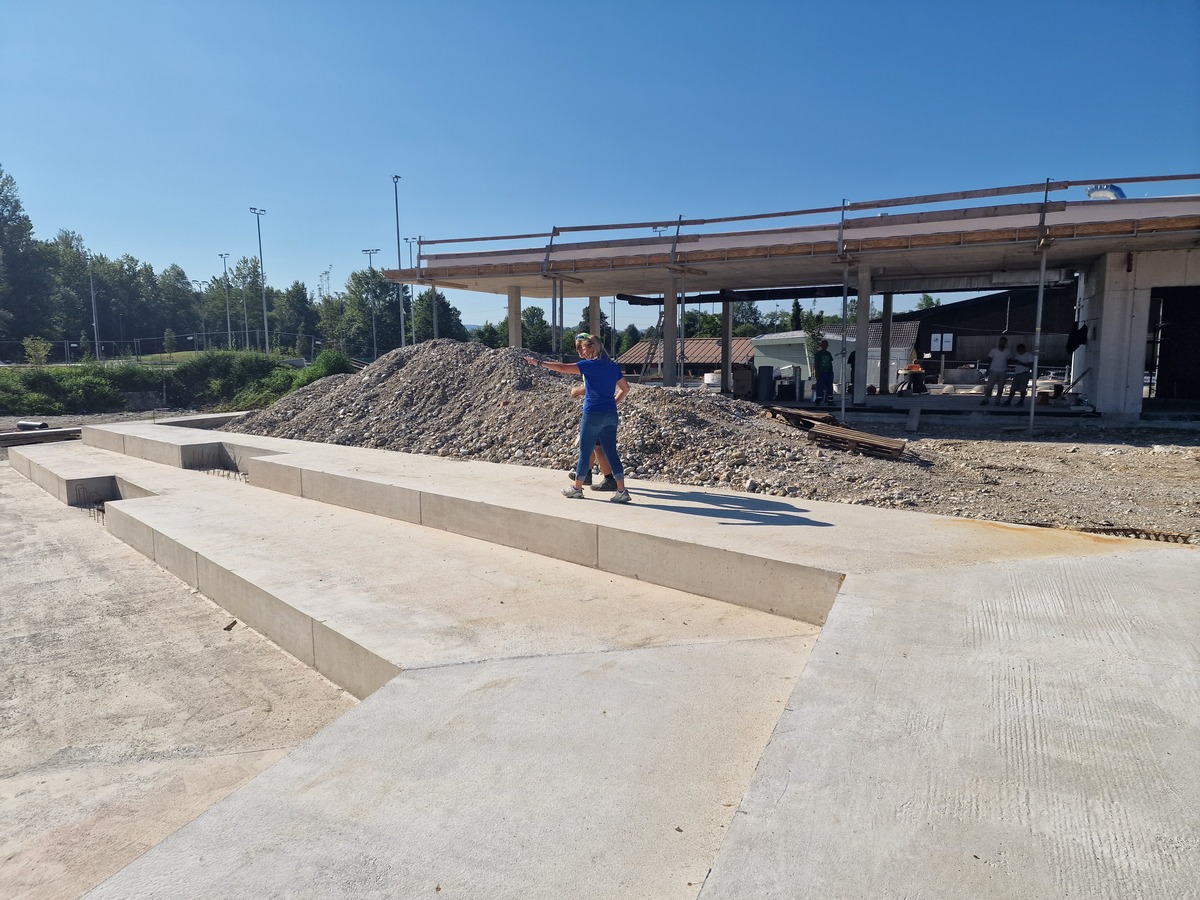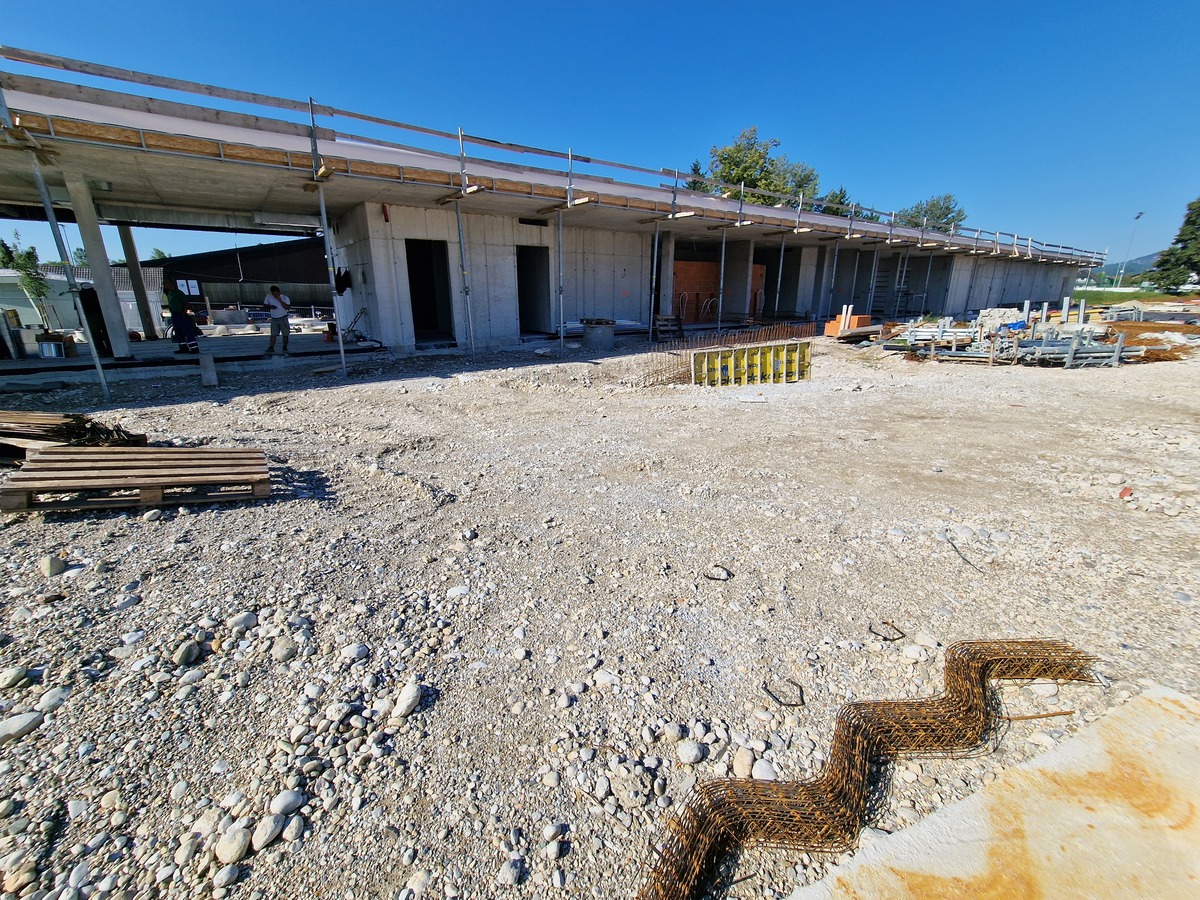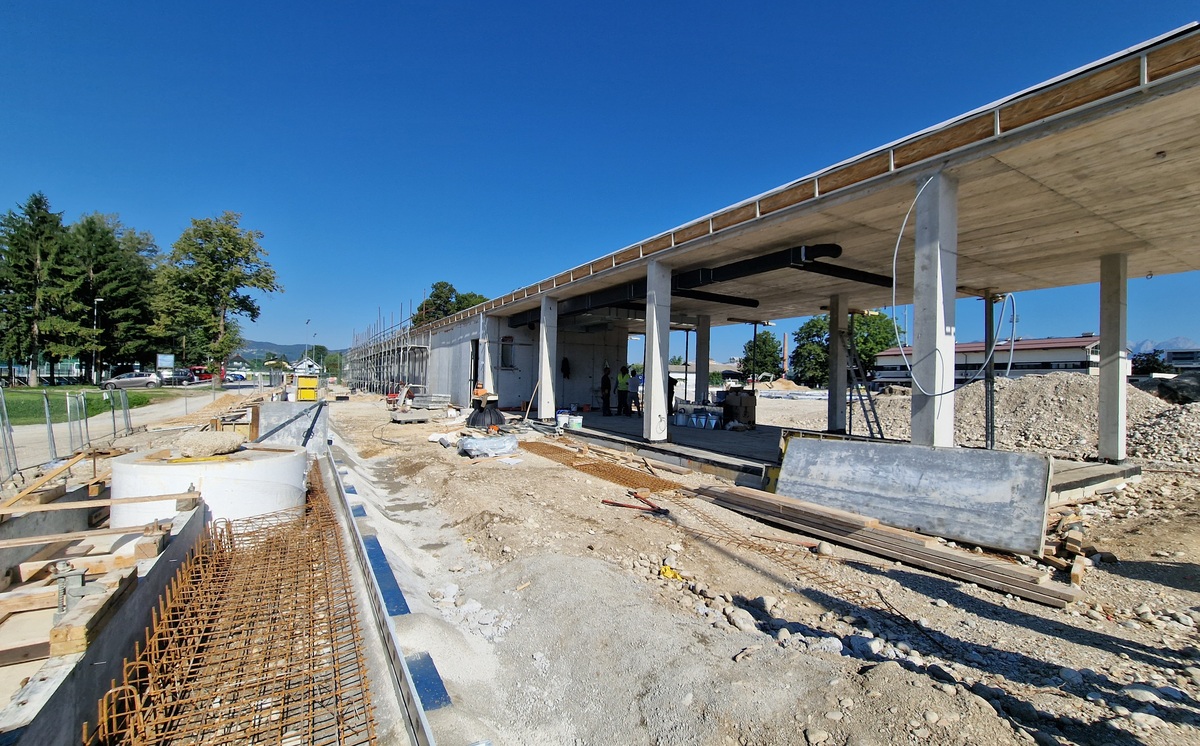 Trenutno se izvaja nasip za bazensko ploščad, v zaključni fazi so tudi betoniranja teras na južnem delu objekta. Naslednji korak je montaža zunanjega stavbnega pohištva, kar predstavlja pomemben korak pri oblikovanju zunanjosti objekta.