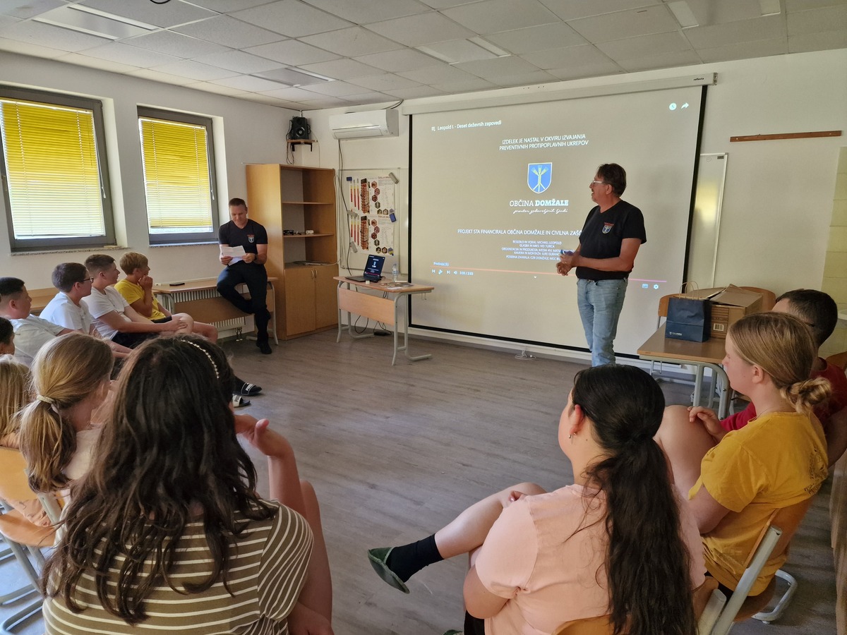 V sklopu obiska sta poveljnik Občinskega štaba Civilne zaščite Marko Žagar in njegov namestnik Peter Gubanc pripravila delavnico na temo preventivne zaščite pred poplavami. Otroci so si ogledali videospot skladbe 10 deževnih zapovedi, ki je nastal v sklopu občinskih preventivnih ukrepov proti poplavam, ter ponovili, katere ukrepe lahko vsak posameznik sprejme za večjo varnost.