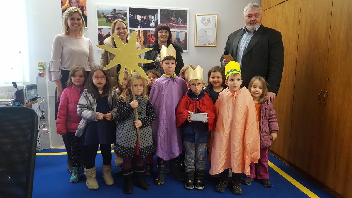 6. januarja krščani praznujejo praznik sveti trije kralji. Po starem slovenskem običaju so Urad župana obiskali koledniki – otroci iz vrtca Dominik Savio in županu Toniju Dragarju ter podžupanji mag. Renati Kosec zapeli pesmico.