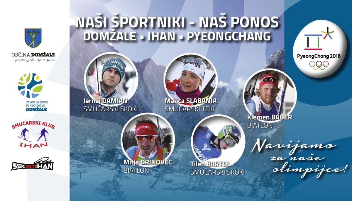 Danes se bodo pričele zimske olimpijske igre v južnokorejskem Pjongčangu, kjer bo slovenske barve zastopalo 71 slovenskih olimpijcev, od tega kar pet športnikov dveh domžalskih klubov.