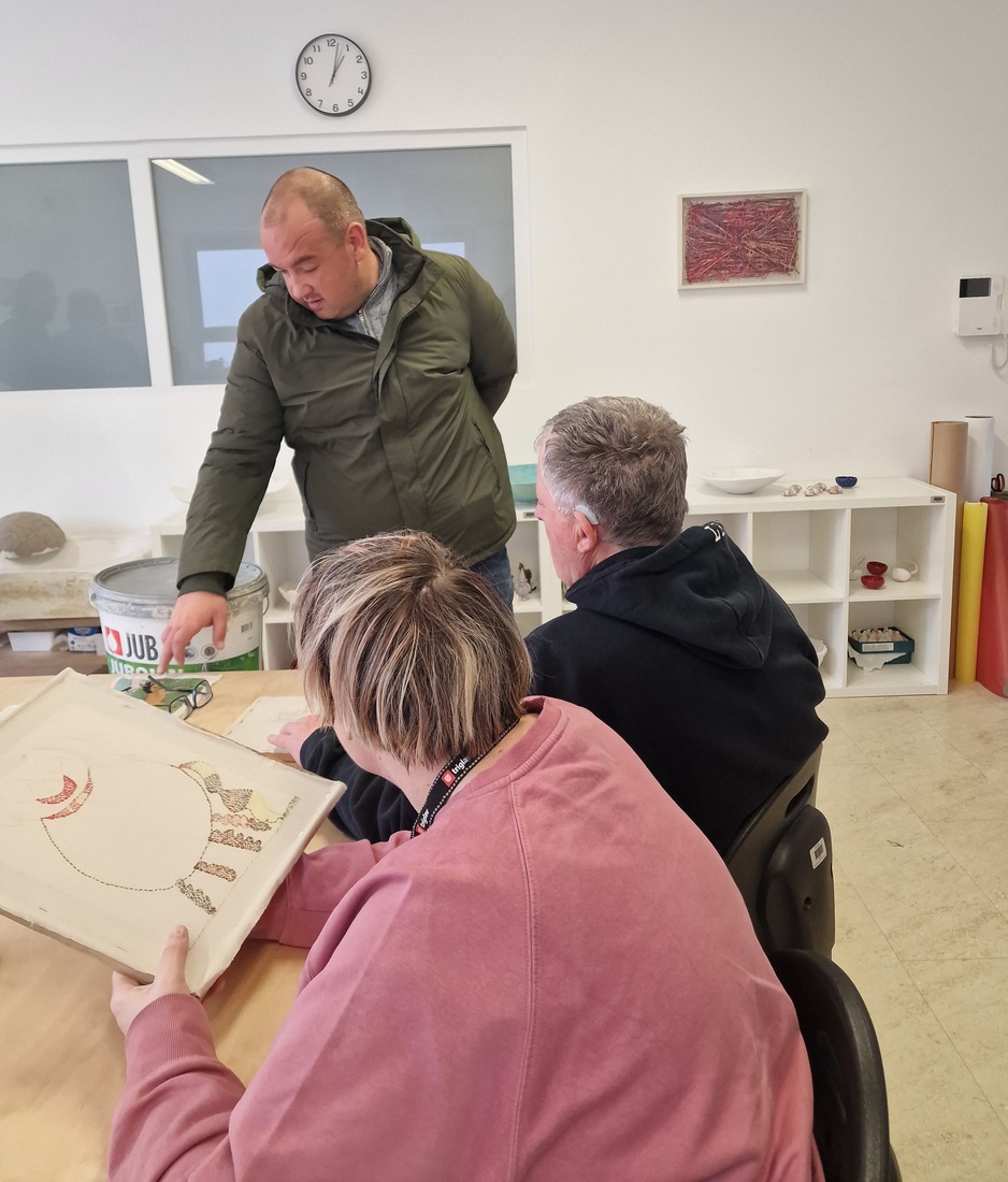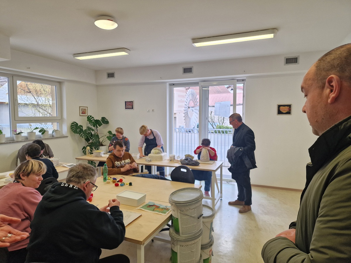Podžupan Občine Domžale Borut Ernestl je v torek, 31. marca 2026 obiskal Varstveno delovni center INCE Mengeš, kjer so pripravili dan odprtih vrat umetniške enote ZU v Mengšu.