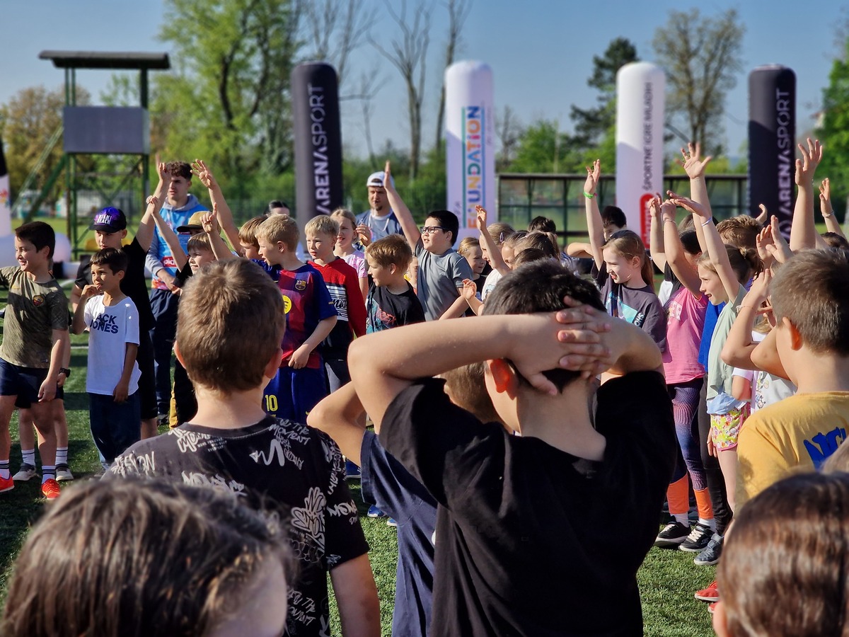 Ta poseben trenutek je dodatno spodbudil občutek povezanosti, sodelovanja in športnega navdušenja med udeleženci. Otroci so nato skozi dopoldne preizkušali svoje spretnosti, vztrajnost in ekipni duh na različnih športnih izzivih.