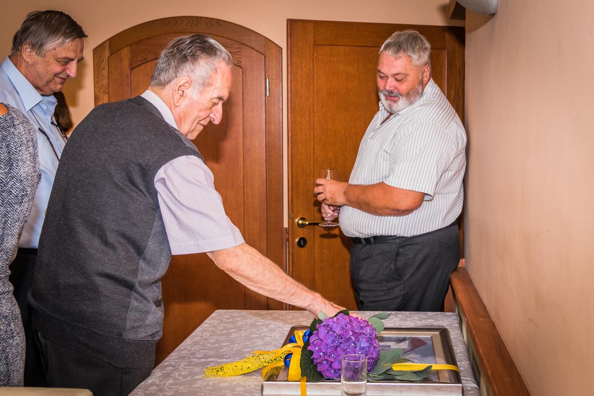 Ob iskrenih čestitkah in željam za dobro zdravje je jubilantu župan Toni Dragar podaril umetniško sliko domžalske slikarke Marije Mojce Vilar z motivom centra Domžal, mesta, ki ga ima naš častni občan zelo rad. Njegovim čestitkam so se pridružili vsi prisotni na sprejemu in zaželeli častnemu občanu, predvsem pa prijatelju, prijetno pot do naslednjega jubileja – še prej pa do tradicionalnega srečanja okoli novega leta, ter veliko prijetnih trenutkov v krogu obeh hčerk ter vnukov in pravnukov.