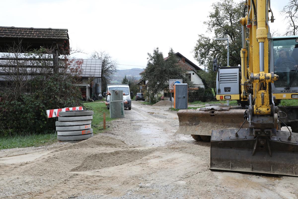 FOTO 1: Kanalizacija in vodovod Brezje pri Dobu - trenutno potekajo dela na hišnih priključkih in gradnji TK omrežja (investitor Telekom), asfaltiranje je predvideno do konca novembra