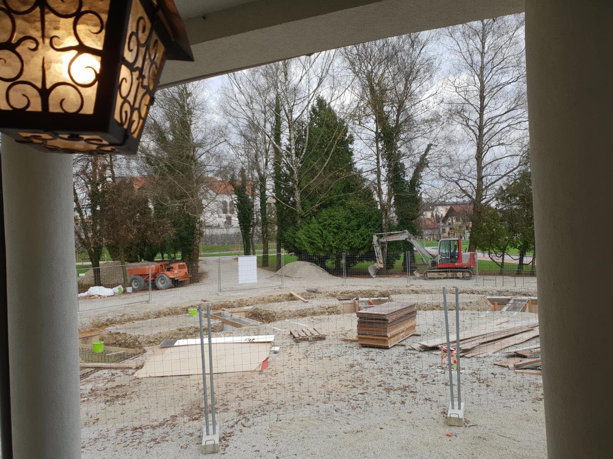V teku je postavitev nadstrešnice pred poslovilnim objektom v Domžalah