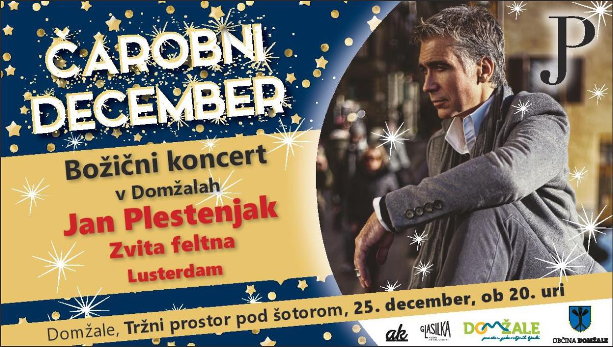 December bo tudi letos čaroben. V torek, 25. decembra, vas vabimo v veliki šotor pri tržnem prostoru, kjer bo od 20. ure dalje potekal Božični koncert z Janom Plestenjakom. Kot predskupina bo nastopila domžalska rock skupina Lusterdam, ki bo predstavila svojo novo ploščo. Po koncertu sledi še nastop skupine Zvita Feltna.