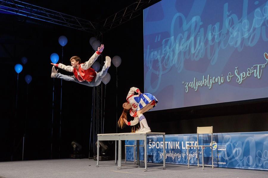 Že pred začetkom podeljevanja nagrad so se športni zaljubljenci lahko zabavali s poziranjem na rdeči preprogi in slikanjem ob živem kipu. Prireditev se je pričela z energičnim prepletom nastopov gimnastičarjev (brata Anže in Nejc), domžalskih Tigrov in plesalcev skupine Leaders Unified. Maja Keržič nas je presenetila z balkona in zapela himno, nastopile so neskončno prikupne mini navijačice Ladies minies, v rokenrolskih kitarskih ritmih sta nas ogrela Marko Kosanovič in njegov kitarski učitelj Miro Novak, s plesnim nastopom pa sta zaključila trikratna mladinska državna prvaka Maša Skočaj in Žiga Farkaš.