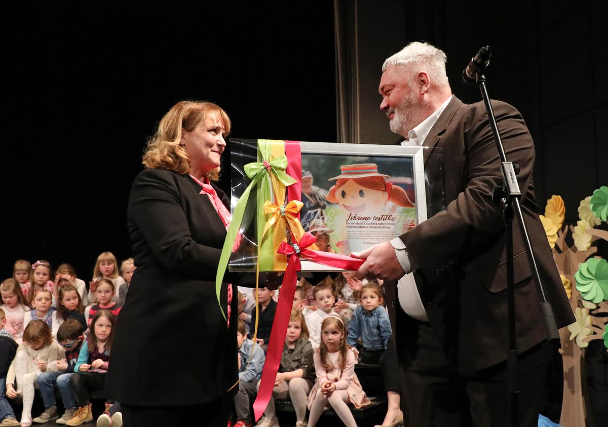 Ob koncu je ravnateljici izročil darilo – sliko, ki prikazuje izjemno prijateljstvo Občine Domžale in Vrtca Urša: »Vsakič znova ste dokazali, kako se sodeluje na skupnih projektih in nam znali priskočiti na pomoč, če smo vas potrebovali. Za vse naše uspešne skupne projekte in vaš doprinos sem vam neizmerno hvaležen. Verjamem, da se bomo tudi v prihodnje bodrili in se trudili za skupno dobro naših najmlajših občanov.«