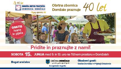 Obrtna zbornica Domžale (OOZ Domžale) v tem mesecu obeležuje polnih 40 let delovanja. Obletnico bodo obeležili z dvema dogodkoma: 12. junija s Slavnostno akademijo s slavnostno podelitvijo priznanj OOZ in OZS, ter s praznovanjem 15. junija na Tržnem prostoru v Domžalah, na katerega ste vabljeni vsi obiskovalci, željni zabave in dobre družbe.
