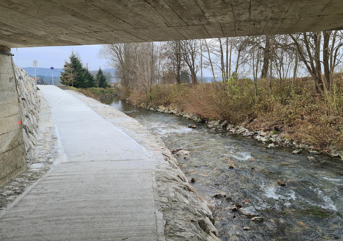 Tako so delavci GP Hribar zgradili podhod, ga obložili z velikimi skalami ter vse skupaj zabetonirali. Podhod je te dni že narejen in se rekreativci že veselo podajajo po njem, sedaj brez nevarnosti pred hitrimi avtomobili. Delavci urejajo le še nekaj površine pred Podružnično Osnovno šolo Krtina.