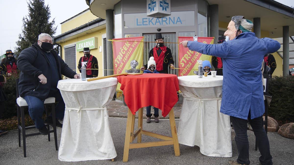 Prenos oblasti je potekal povsem varno, s priporočeno razdaljo in na zabaven način. Ker pa je bil župan malce v dvomih, če je pravilna odločitev, da oblast preda iz rok, so ga morali člani pustne sekcije prepričati, da bodo poskrbeli za prave, tudi ati covid ukrepe. S strogimi pustnimi zakoni pa bodo poskrbeli, da se bo občinska blagajna napolnila do vrha in še malo čez.