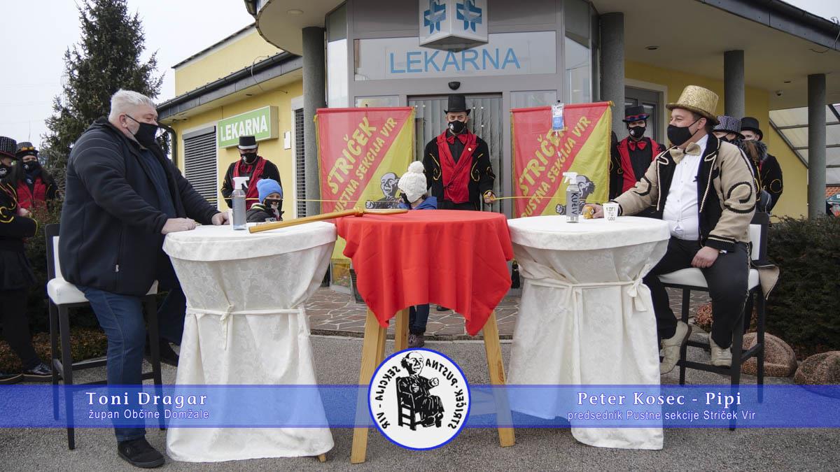 Kot je že običaj, se je pustno dogajanje začelo s predajo oblasti in ključa občinske blagajne, ki ga je v nedeljo, 31. januarja 2021 predsedniku Pustne sekcije Striček Petru Koscu – Pipiju predal župan Občine Domžale Toni Dragar. Pustna sekcija Striček bo ponovno prevzela oblast in veljati bodo začeli strogi pustni zakoni. Čas do pepelnice bo tudi ključen, zato vse upe polagamo v pustno druščino z Vira.