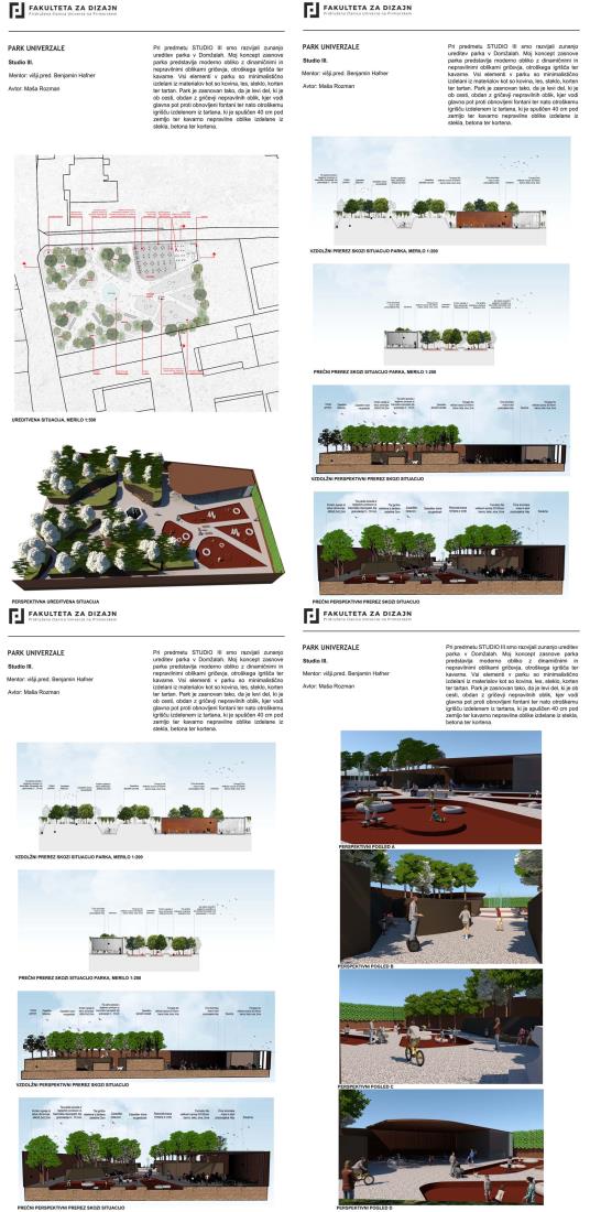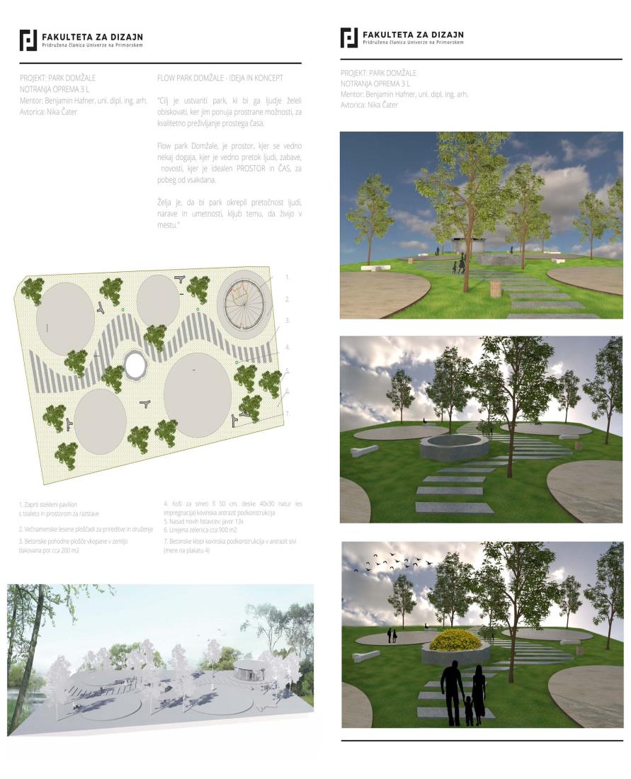 Park Univerzale v središču Domžal bo v prihodnje deležen prenove. Študentje Fakultete za dizajn so pri predmetu Studio III, pod mentorstvom viš.pred. Benjamina Hafnerja zasnovali konceptualne študije prenove Parka Univerzale. Predstavitev njihovih projektov bo moč videti na razstavi v kratkem.