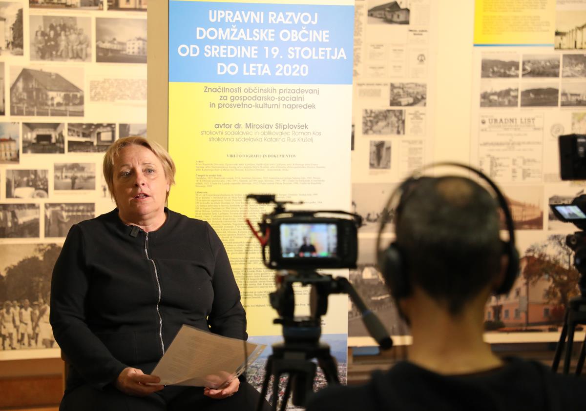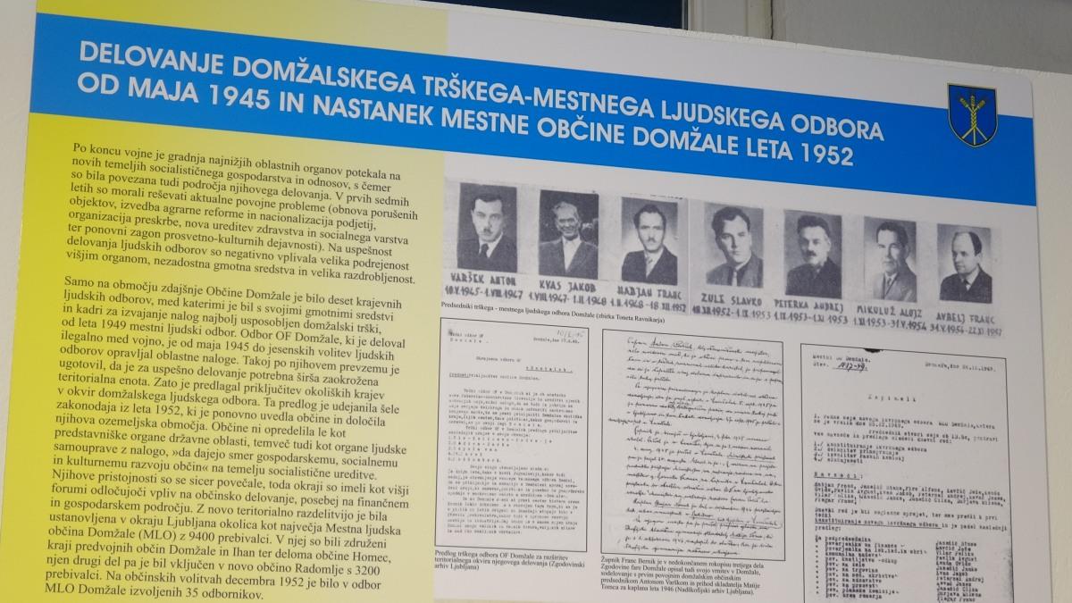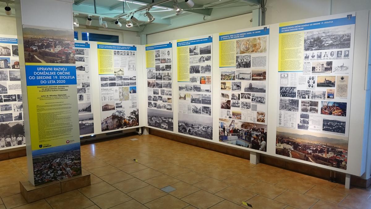 Po nagovoru Cvete Zalokar in Tonija Dragarja, je o razstavi spregovoril dr. Miroslav Stiplovšek: "Na prvem panoju je arhivsko gradivo upravnega razvoja Občine Domžale od sredine 19. stoletja do druge svetovne vojne, sledi pano o slamnikarstvu, ki je bil temelj za velik napredek Domžal od sredine devetnajstega stoletja do prve svetovne vojne. Sledi pano z razvojem industrije in obrti na domžalskem območju med obema vojnama, kjer so se zgodile velike socialne spremembe. Uspešen razvoj šolstva, kulture, športa ter gasilstva od sredine devetnajstega stoletja do leta 1941, delovanja domžalskega trškega – mestnega ljudskega odbora od maja 1945 in nastanek mestne občine leta 1952, razvoj industrije. Sledijo temeljne gospodarske panoge mestne občine Domžale, novo obdobje v razvoju socialnih in izobraževalnih ustanov ter delovanje kulturnih, športnih in drugih društev po koncu vojne leta 1945, oblikovanje velike občine Domžale s širokimi pristojnostmi v drugi polovici petdesetih let in njen upravni razvoj do leta 1995, uspešen razvoj industrije, obrti in trgovine do začetka devetdesetih let, komunalna in stanovanjska gradnja ter nove pomembne javne zgradbe, izboljšanje pogojev za razvoj šolstva, kulture in športa ter za delovanje društev, ustanovitev zdajšnje občine Domžale leta 1995 in njen upravni razvoj do leta 2020, porast komunalnih del in velike gospodarske spremembe, prizadevanja za nadaljnji razvoj vzgoje, izobraževanja in drugih družbenih dejavnosti, nov napredek na področju kulture, športa in rekreacije ter ustanovitev zdajšnje občine Domžale leta 1995 in njen upravni razvoj do leta 2020."