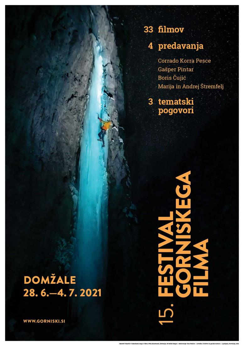 Festival gorniškega filma je letos zaradi epidemije zimo zamenjal za poletje, šopek prizorišč pa za svojo prestolnico – Domžale, a njegovo srce tudi tokrat, že 15. leto zapored, bije v navdihujočem ritmu alpinizma, plezanja, gorske narave in kulture ter gora, športa in avanture. V Tomčevi dvorani KD Franca Bernika Domžale, na dvorišču pr’ Berniku in v velikem šotoru na ploščadi OŠ Venclja Perka se bo konec junija in v začetku julija zvrstilo 33 filmskih zgodb iz naročja gora, osupljivih pustolovščin iz navpičnice, veličastnih utrinkov gorske narave in problematike divjih živali, premikanja meja v Himalaji in športnoplezalnih dosežkov v gibljivi sliki ter pomenljivih pripovedi o gorskih kulturah in avanturah. Med njimi bo pet slovenskih filmov.