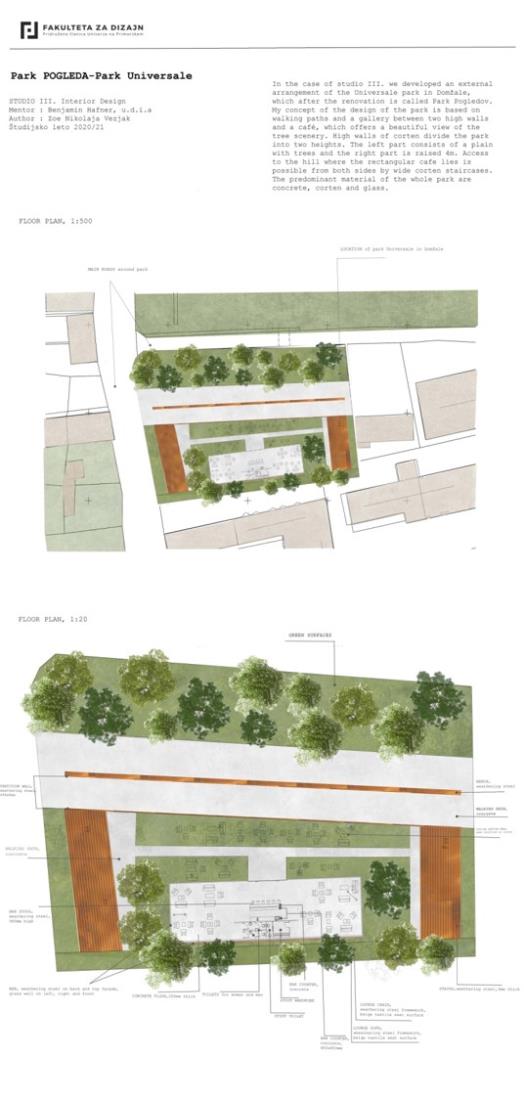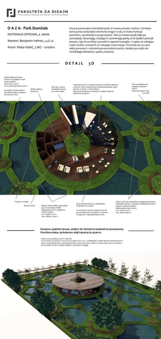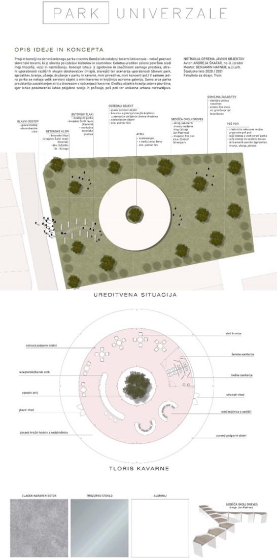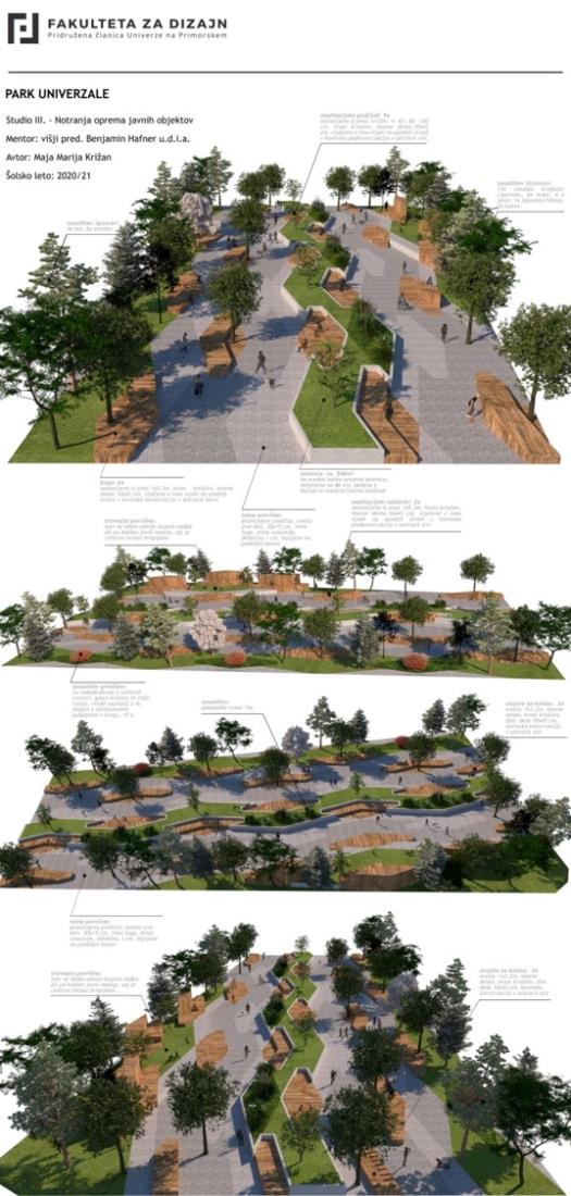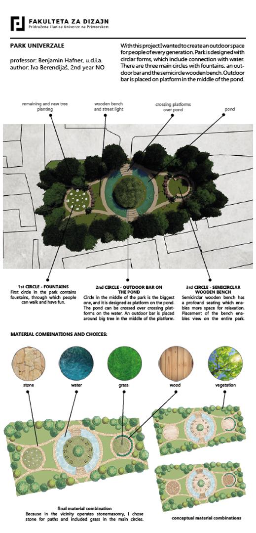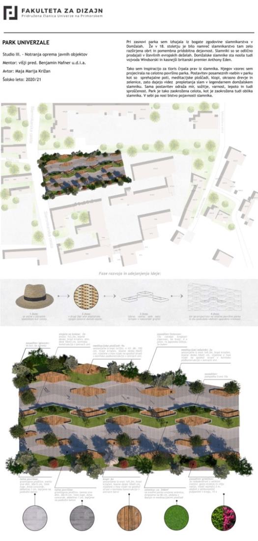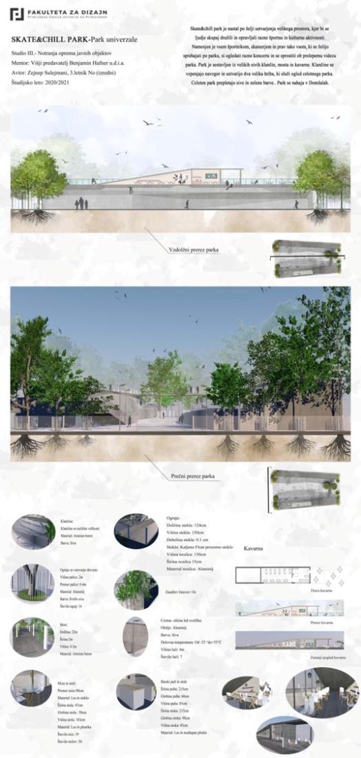 Občina Domžale sodeluje tudi s Fakulteto za design, naše zadnje skupno sodelovanje pa se je zgodilo meseca junija, ko so študentje fakultete predstavili svojo razstavo konceptualnih rešitev prenove parka Univerzale. Razstava je bila fizično postavljena v parku Univerzale.