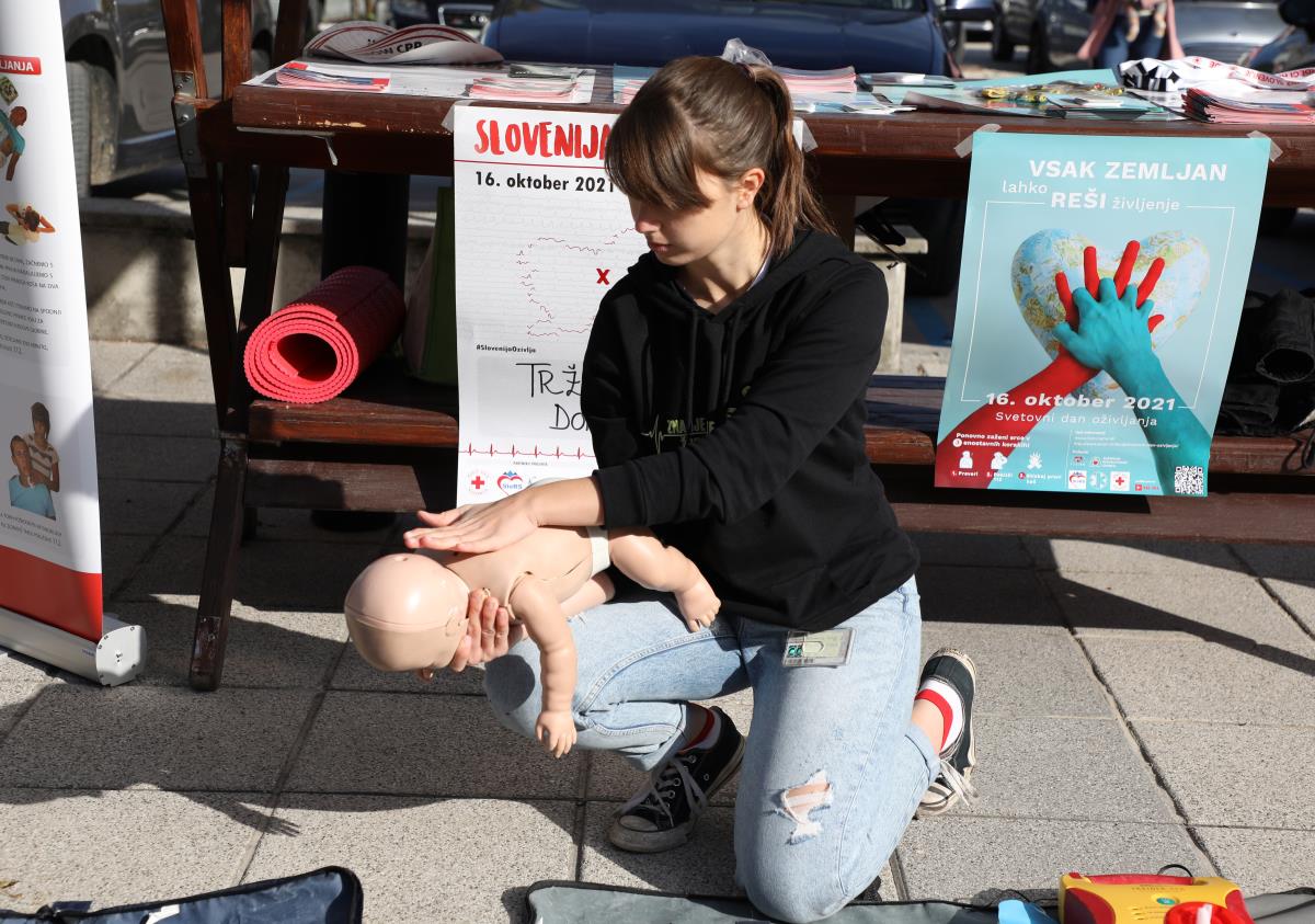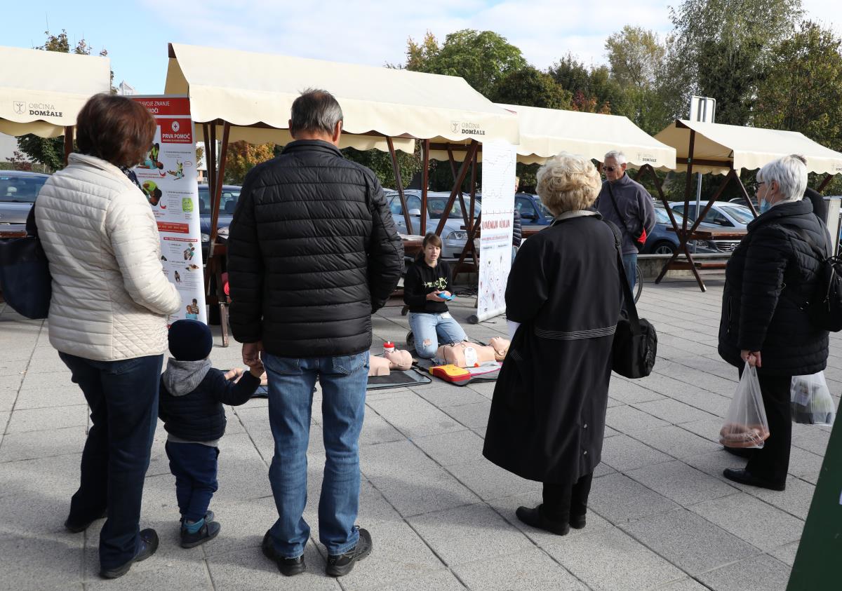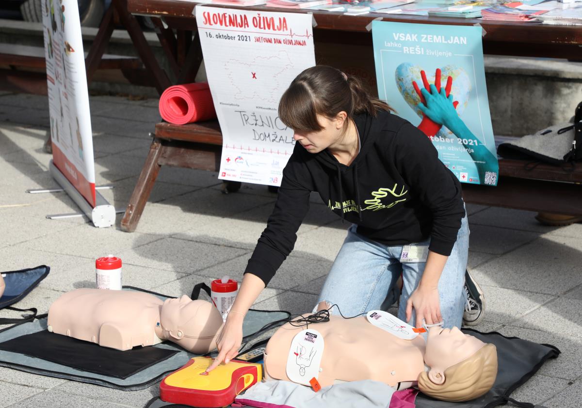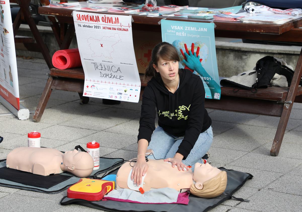 V soboto 16. oktobra 2021 obeležujemo Svetovni dan oživljanja. V okviru Svetovnega dneva oživljanja je danes tudi v Domžalah potekala akcija Slovenija oživlja. Globalni akciji ozaveščanja so se pod okriljem Zveze študentov medicine Slovenije tudi letos pridružili študenti medicine iz obeh slovenskih fakultet, skupaj s študenti petih zdravstvenih fakultet, člani Zveze tabornikov Slovenije, člani Zveze slovenskih katoliških skavtinj in skavtov ter predstavniki območnih združenj Rdečega križa Slovenije. Prisotna je bila tudi sekretarka OORKD, ga. Majda Mernik. Na Tržnem prostoru v Domžalah so tako prikazali uporabo defibrilatorja in obiskovalce ozaveščali o temeljnih postopkih oživljanja.