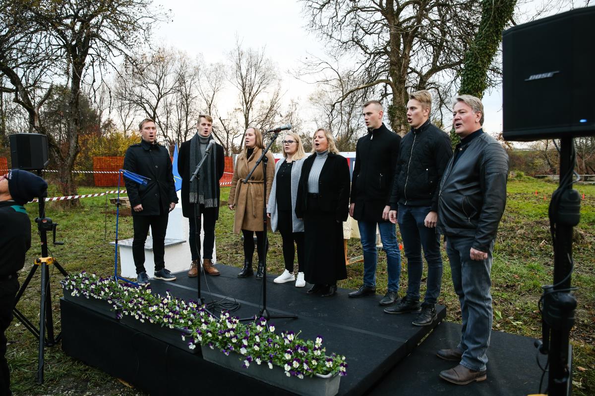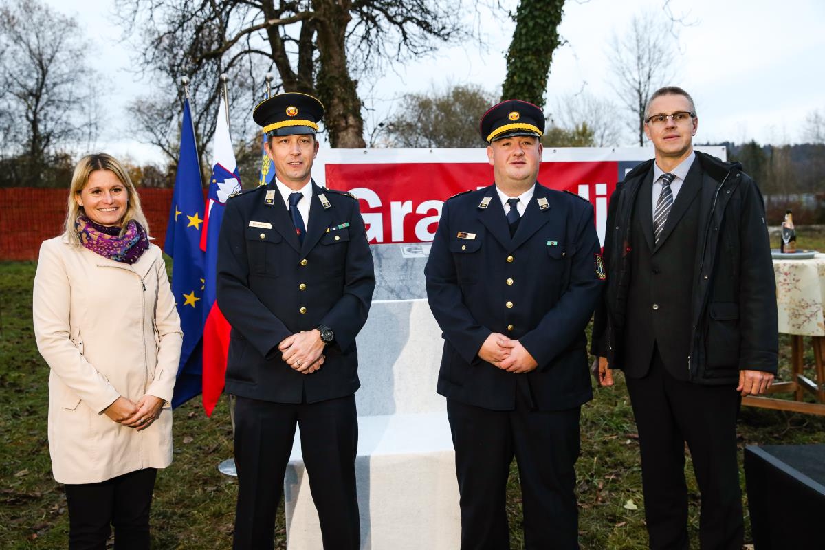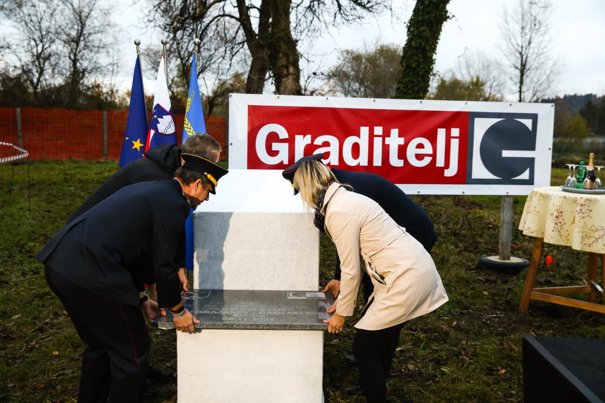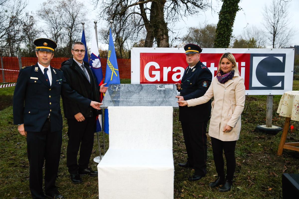 Temeljni kamen so simbolično položili podžupanja mag. Renata Kosec, predsednik PGD Študa Boštjan Narobe, predsednik gradbenega odbora PGD Študa Borut Ernestl in Bojan Zorman iz podjetja Graditelj Kamnik.