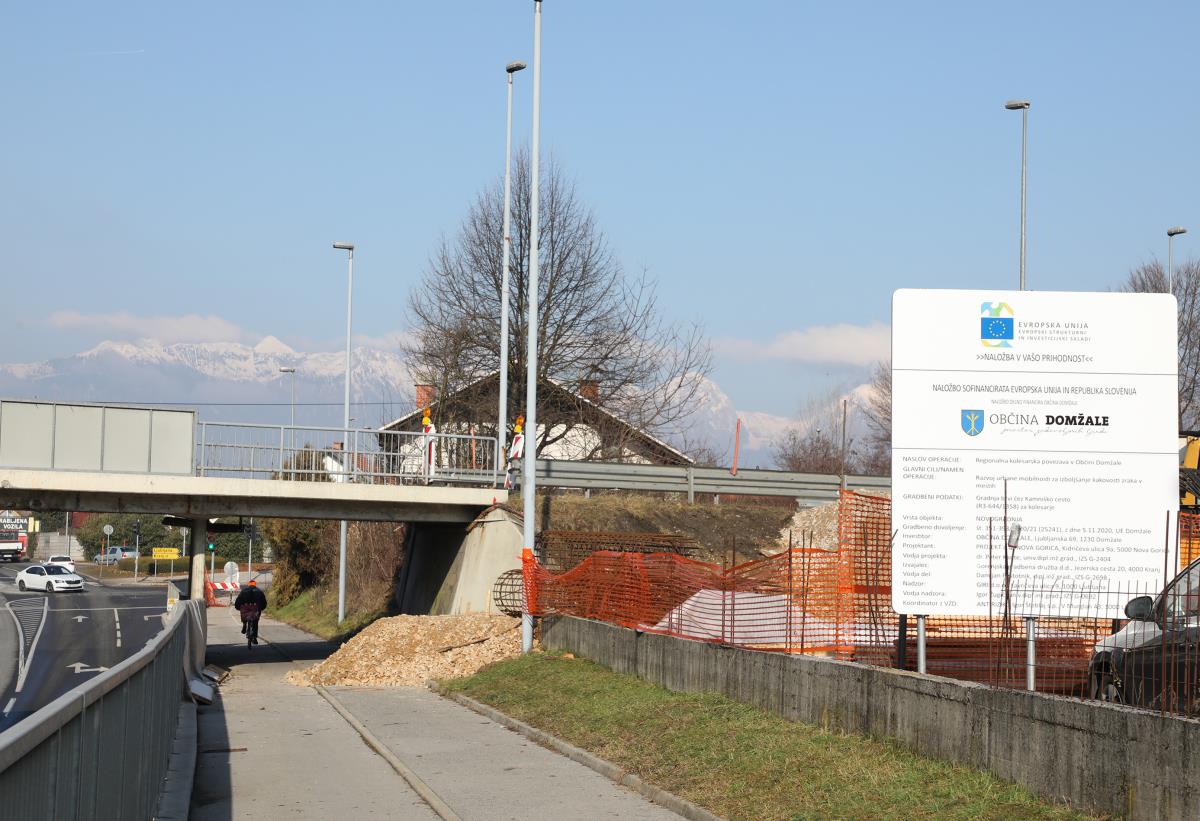 V občini Domžale si z izvajanjem različnih projektov prizadevamo za vzpostavitev infrastrukture, ki bo občankam in občanom omogočala trajnostno mobilnost. Eden izmed projektov je tudi gradnja regionalne kolesarske povezave občine Domžale, ki se je začela z zabijanjem pilotov nad cestnim dovozom in železniško progo v mesecu januarju. Mag. Renata Kosec, podžupanja Občine Domžale, je ob začetku gradnje regionalne kolesarske povezave občine Domžale povzela: »Cilj je zmanjšati količino osebnih motornih vozil, predvsem v mestnem jedru, ki se dnevno vozijo na delovno mesto ali mesto šolanja v Ljubljano. Zavedamo se, da to zahteva spremembo navad med prebivalci občine, ki sedaj redno uporabljajo zeleno os Kamniška Bistrica za rekreacijo, manj pa omenjeno ali druge kolesarske poti za dnevne migracije na delo ali mesto šolanja. Občanke in občanke želimo tudi z gradnjo regionalne kolesarske povezave občine Domžale spodbuditi k spremembi navad, k hoji, kolesarjenju in uporabi javnega prevoza. Delno spodbujamo trajno mobilnost tudi z urejanjem centra Domžal, ki postaja vse bolj namenjen pešcem in kolesarjem, manj pa motornim vozilom.« Gradnja regionalne kolesarske povezave od Češminove ulice do Krožne ceste se je začela v januarju in bo zaključena z izgradnjo nove kolesarsko steze v dolžini 2 km, dveh brvi za kolesarje, rekonstrukcijo obstoječega para avtobusnih postajališč na trasi povezave, ureditvijo cestne razsvetljave in novo ureditvijo tako vertikalne kot horizontalne signalizacije na celotni dolžini trase.