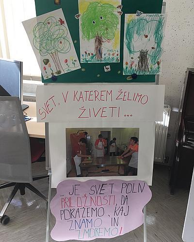 Gospod Marko Hrovat je tudi danes otrokom najprej predstavil hroščka in povedal, kaj je Hrošček delal med poletjem. Pri tem pa je ugotovil, da učenci izjemno dobro poznajo našo domžalsko občino in njene znamenitosti. Hrošček je otrokom razdelil spominske broške in zatem je sledilo veliko presenečenje. Otroci so namreč za Hroščka, podžupanjo mag. Kosec in gospoda Hrovata naredili posebno spominsko lutko Hroščka Simona. Zatem pa so podžupanji predstavili plakate, ki so jih delali vsi razredi ob Tednu otroka. Na plakatih so bili odgovori na vprašanje, kakšen svet si želijo in ti odgovori so segli prav do srca – svet brez vojn, brez drog in alkohola, svet, kjer bodo vsi zdravi, svet, kjer bodo vsi prijazni, svet, kjer bo lepo okolje,... Tudi najmlajši so nam zaupali svoje želje – želijo si svet »veselih kosmatincev«, muck in kužkov. Sledilo pa je še eno presenečenje, saj je gospa ravnateljica za svoje učiteljice pripravila rožico in čokoladko, saj je 5. oktober svetovni dan učiteljev.