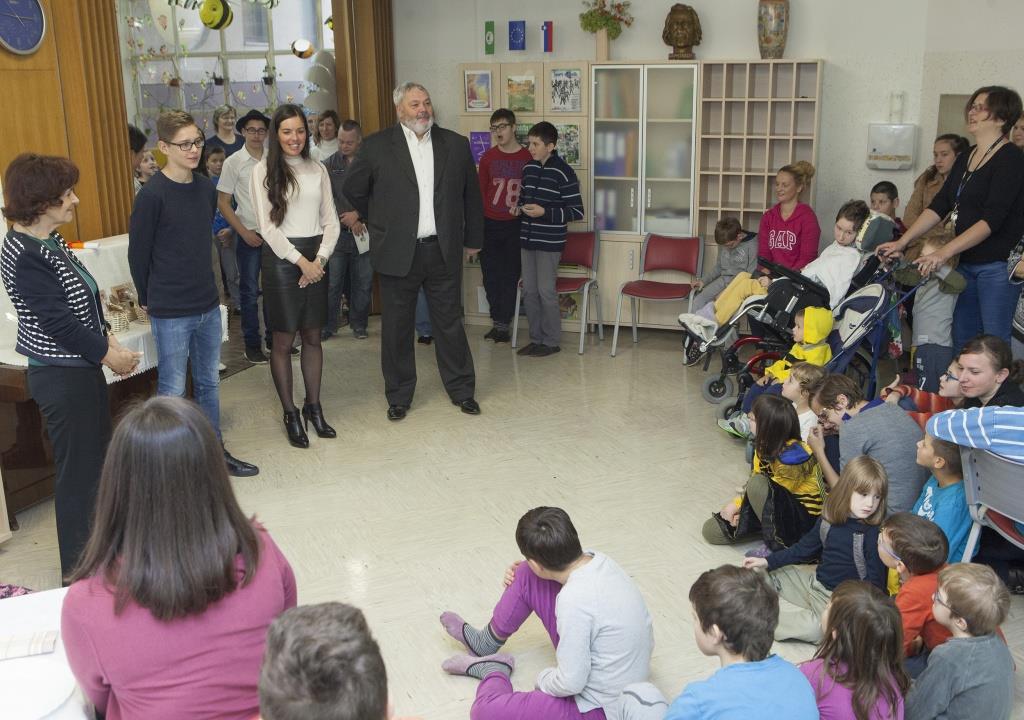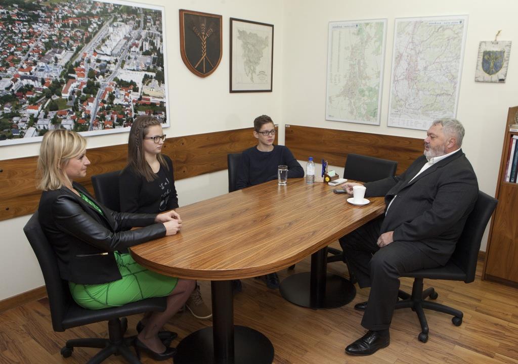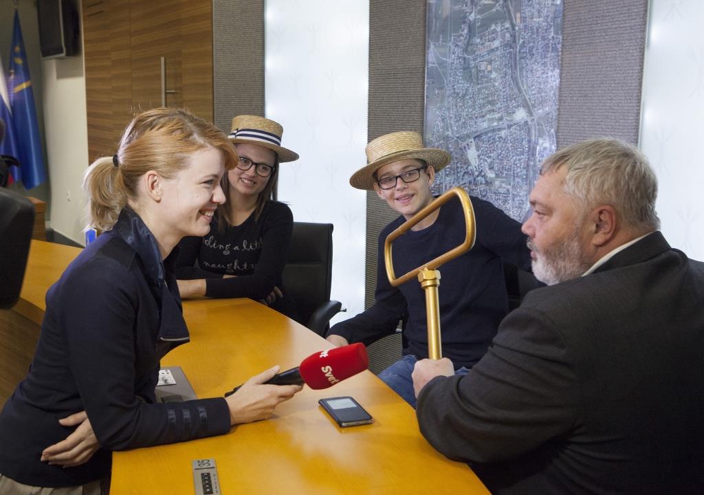 Ob 11. uri smo na Občini Domžale odprli vrata za najmlajše. Pisarni mini župana in mini podžupanje so obiskali otroci, predstavniki razredov – njuni sošolci, prijatelji, znanci – ki so Juretu in Jerci predstavili predloge, priporočila, izboljšave oz. pohvale, ki jih sami kot meščani zaznavajo.