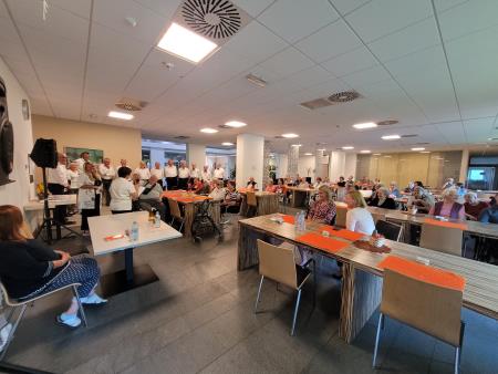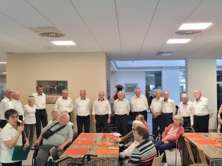 Alzheimer cafe se je zaključil s čudovitim nastopom Pevskega zbora Janeza Cerarja pod vodstvom zborovodkinje Marike Haler, ki v MGC Bistrica že sedem let izvaja projekt S pesmijo do boljšega spomina.