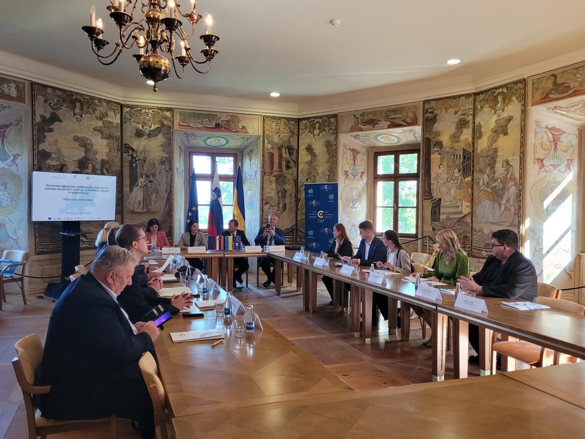 V ponedeljek, 2. oktobra 2023, se je županja Občine Domžale mag. Renata Kosec udeležila posvetovalnega srečanja v okviru Slovensko-ukrajinskega sodelovanja: odgovor na potrebe ukrajinskih občin pri pokonfliktni obnovi in modernizaciji, ki ga je pripravil Center za evropsko prihodno na gradu Jable. Srečanja so se udeležili županje in župani Domžal, Hrastnika, Idrije, Kočevja, Lenarta, Logatca ter župan in visoki predstavniki ukrajinske občine Bucha, predstavniki Veleposlaništva Ukrajine v Sloveniji, Ministrstva za zunanje in evropske zadeve Republike Slovenije ter vodilni predstavniki Nemške agencije za mednarodno sodelovanje (GIZ), Skupnosti občin Slovenije ter Združenja občin Slovenije. Dogodek je bil namenjen analizi dosedanjih dosežkov, dobrih praks pri dosedanjih projektih sodelovanja slovenskih občin z Ukrajino ter pogledu v prihodnost sodelovanja med Slovenijo in Ukrajino na področju pokonfliktne obnove in modernizacije.