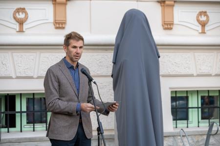 Vse zbrane je pred slavnostnim odkritjem spomenika nagovoril podžupan Občine Domžale Matej Primožič, ki je izpostavil prizadevanja glasbenika Staneta Habeta za prepoznavanje pomena izobraževanja na področju glasbe. »Stane Habe je bil predvsem človek dejanj. Prizadeval si je za umeščanje in uveljavljanje kulture, še posebej raznovrstne glasbe, kar je bilo v tistih časih, kot je še danes, zahtevno delo. Boril se je z birokratskimi in vladajočimi mlini za uveljavitev glasbenega izobraževanja. Stane Habe je bil velik človek, z velikim posluhom za ljudi,« je še dodal.