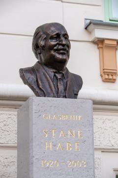 Postavljeni spomenik, ki stoji na dvorišču Glasbene šole Domžale, nas bo spominjal na profesorja Staneta Habeta, pobudnika in tvorca zakona o glasbenih šolah. Pod njegovim vodstvom je glasbena šola postala enakopravna z ustanovami obveznega šolstva. Stane Habe je poudarjal, da se v glasbeni šoli vzgaja rod bodočih ljubiteljev glasbe, iz katerih bo rasla zavzetost tudi za vsa druga kulturna vprašanja in probleme v občini. Pomembno vlogo je odigral pri pridobivanju lastništva Kulturnega doma Franca Bernika in bil vrsto let vodja aktiva ravnateljev glasbenih šol. Prejel je tudi številna priznanja, plakete in nagrade, med drugim zlati list Zveze kulturnih organizacij, red dela z zlatim vencem, Žagarjevo nagrado za izredne uspehe pri napredku vzgoje in izobraževanja, predvsem na področju glasbene vzgoje mladih rodov. V letu 1994 je postal častni občan Občine Domžale.