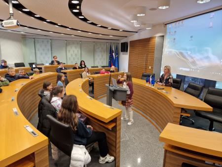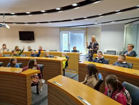 Učenci Podružnične osnovne šole Krtina so v sredo, 8. novembra 2023, ob 14. uri obiskali županjo v njenem Uradu. Ogledali so si županjino pisarno in si v sejni sobi z veseljem ogledali turistično-predstavitveni film Občine Domžale. Županji so namenili marsikatero vprašanje in na enkrat se je utrnila pobuda s strani učencev, da bi tudi sami radi glasovali, kot to počnejo svetniki in svetnice Občinskega sveta Občine Domžale.