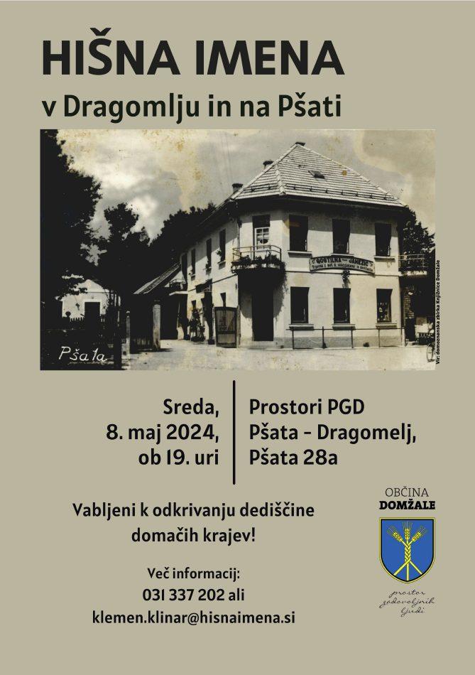 Po vaseh je nekoč veljalo, da so se ljudje med seboj poznali le po hišnih imenih. V nekaterih krajih to gojijo še danes, ponekod pa so hišna imena že na robu pozabe. S hišnim imenom se ljudje čutijo bolj povezane z domačim krajem, saj staro hišno ime potrjuje, da hiša v kraju ima zgodovino. Od leta 2020 je raba hišnih imen vpisana v nacionalni Register nesnovne kulturne dediščine. Najbolj obširno zbiranje imen že od leta 2009 poteka na širšem Gorenjskem. Do sedaj so bila imena popisana v več kot 500 vaseh v 25 občinah, skupaj je zbranih že več kot 15 000 hišnih imen. Od leta 2022 je v akcijo vključena tudi občina Domžale, kjer projekt postopoma napreduje. V letošnjem letu bo projekt obravnaval območje krajevnih skupnosti Ihan in Dragomelj – Pšata ter vas Šentpavel in nekdanje samostojno naselje Študa.