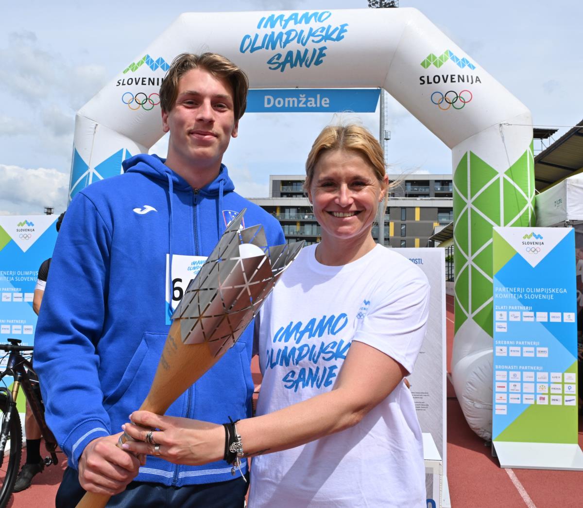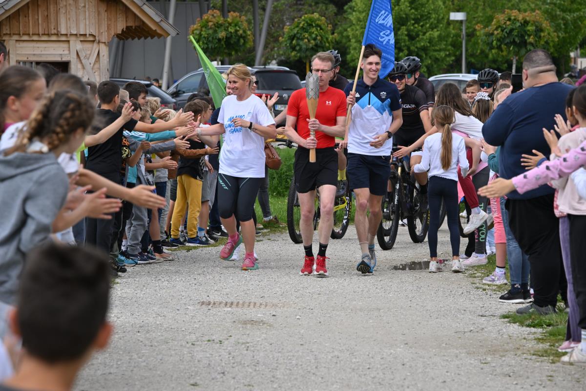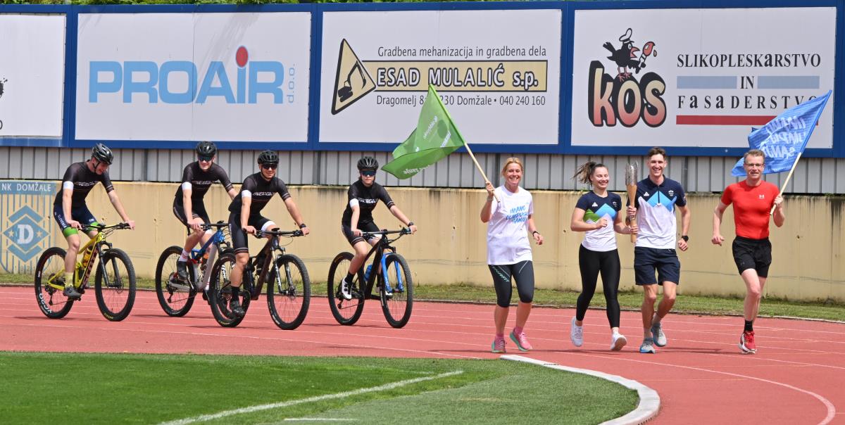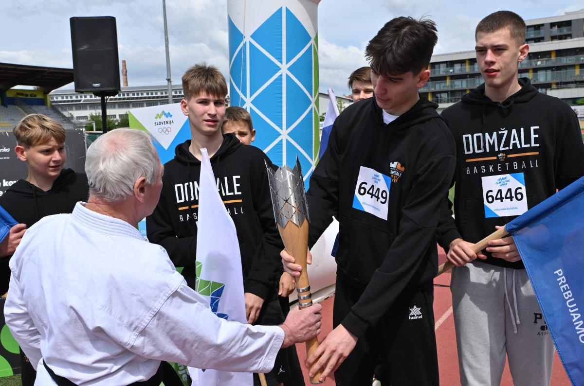 Baklo so v Depali vasi najprej prevzeli kolesarji društva Energija in jo sredi Domžal predali županji Renati Kosec, ki jo je mimo navdušenih šolarjev ter v družbi Lovra Planka in Lucije Hribar ponesla na domžalski stadion. Lovro je olimpijec iz Pekinga, Lucijo pa čaka olimpijski nastop v Parizu. Oba sta športnika leta občine Domžale, skupaj z njima pa je baklo na začetku domžalske poti nosil tudi ultramaratonec Tomaž Kališnik.