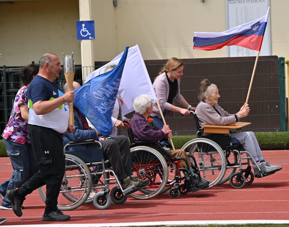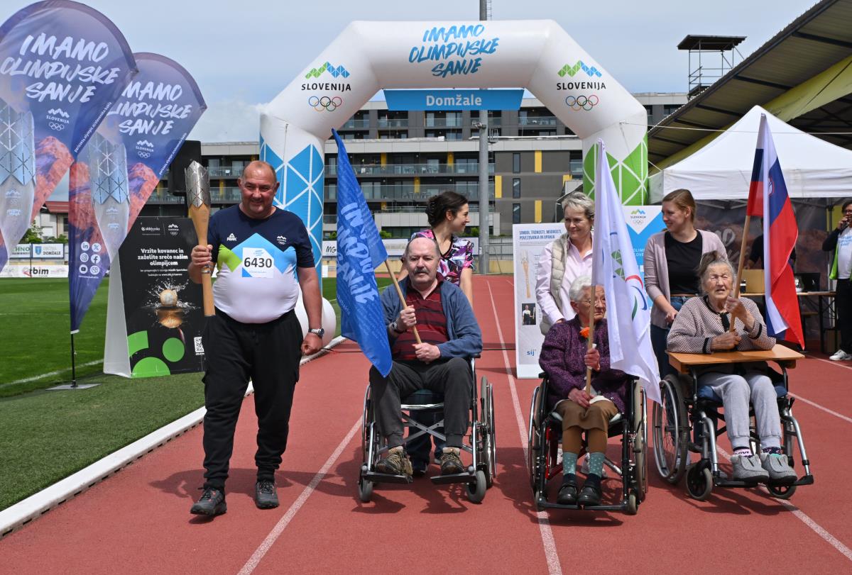 Za prešerno in iskreno navijaško vzdušje so poskrbeli starejši iz domžalskega doma upokojencev, ki so prav na koncu tudi sami prijeli baklo pred njenim odhodom v Šentjošt.